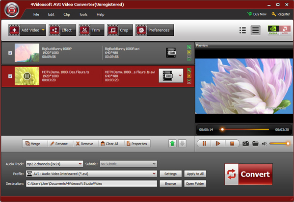 4Videosoft AVI Video Converter converts any video file to AVI format, suitable for playback on AVI players that include Xbox, Blackberry, PSP, Sansa, and Wii. With 4Videosoft AVI Video Converter, you’ll be able to take advantage of a fully array of editing features, stuff like trim, crop, merge, even watermark! Best of all, 4Videosoft AVI Video Converter performs the conversion process quickly, letting you move on with your video watching and editing without further interruption.