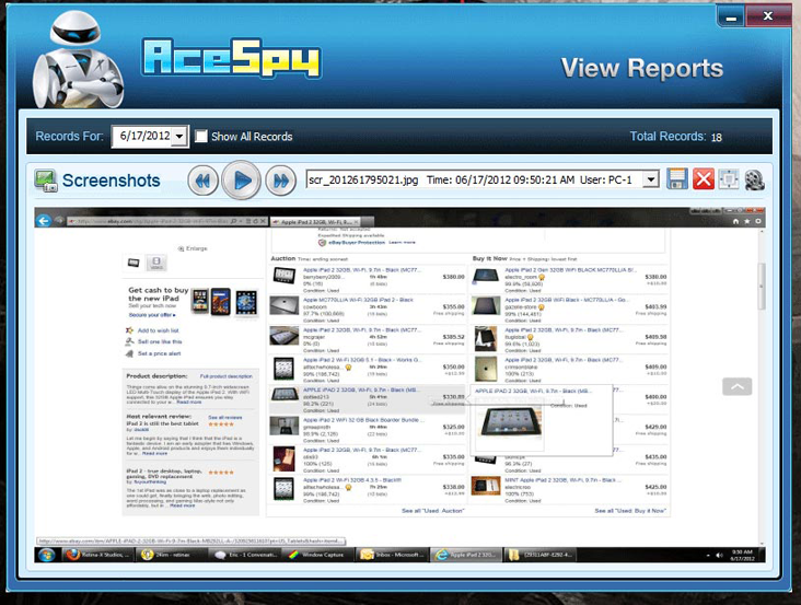 Don’t need email notification? AceSpy also features an intuitive interface that collects all activity for your review at your convenience. And once you see what’s going on, you can block any activity just by entering a list of programs and websites that are blacklisted, triggering automatic shutdowns and notifications if the target computer attempts to visit or open them!
