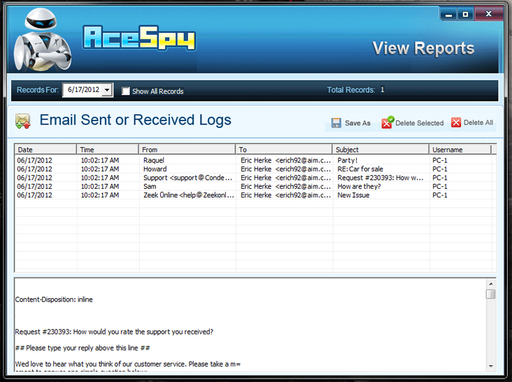 - “An excellent product. I tried quite a few spy packages before I purchased AceSpy - I am delighted with the programme - it delivers what it says for a fraction of the cost of Eblaster etc”- UK User - Name omitted by request
