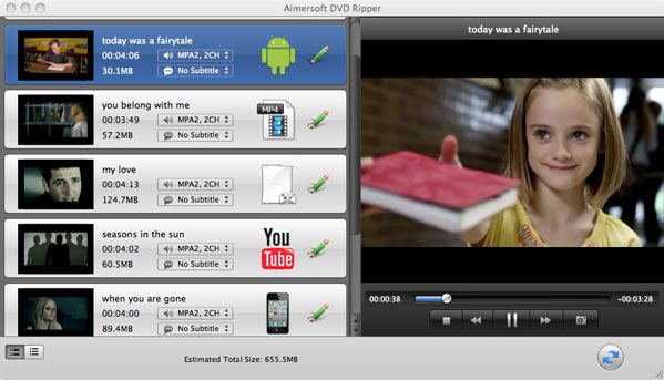 “Two thumbs up for the Aimersoft DVD Ripper for Mac. Aimersoft DVD Ripper for Mac enabled me to change the video ratio to fit the screens of my mobile devices with only minimal loss of resolution. It supports most video and audio output formats to, at least all the ones 90+% of people I know would ever have cause to need.”