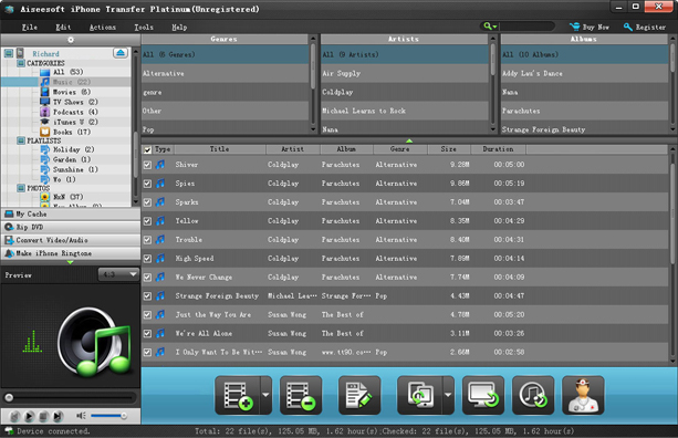 - “Love the iPhone Transfer Platinum in this BD Software Toolkit. It allows me to transfer files between my iPhone and PC. More surprisingly, I can even make my own iPhone ringtones with source DVD, video and audio files. So cool.”- Gary