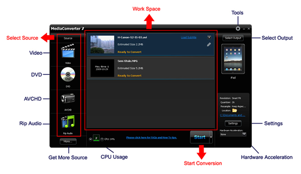 “ArcSoft MediaConverter is really easy to use! Simply drag the file you want into the main interface, pick your device and hit Start. There are lots of device profiles to choose, from iPods to YouTube and PSP to the Wii..”