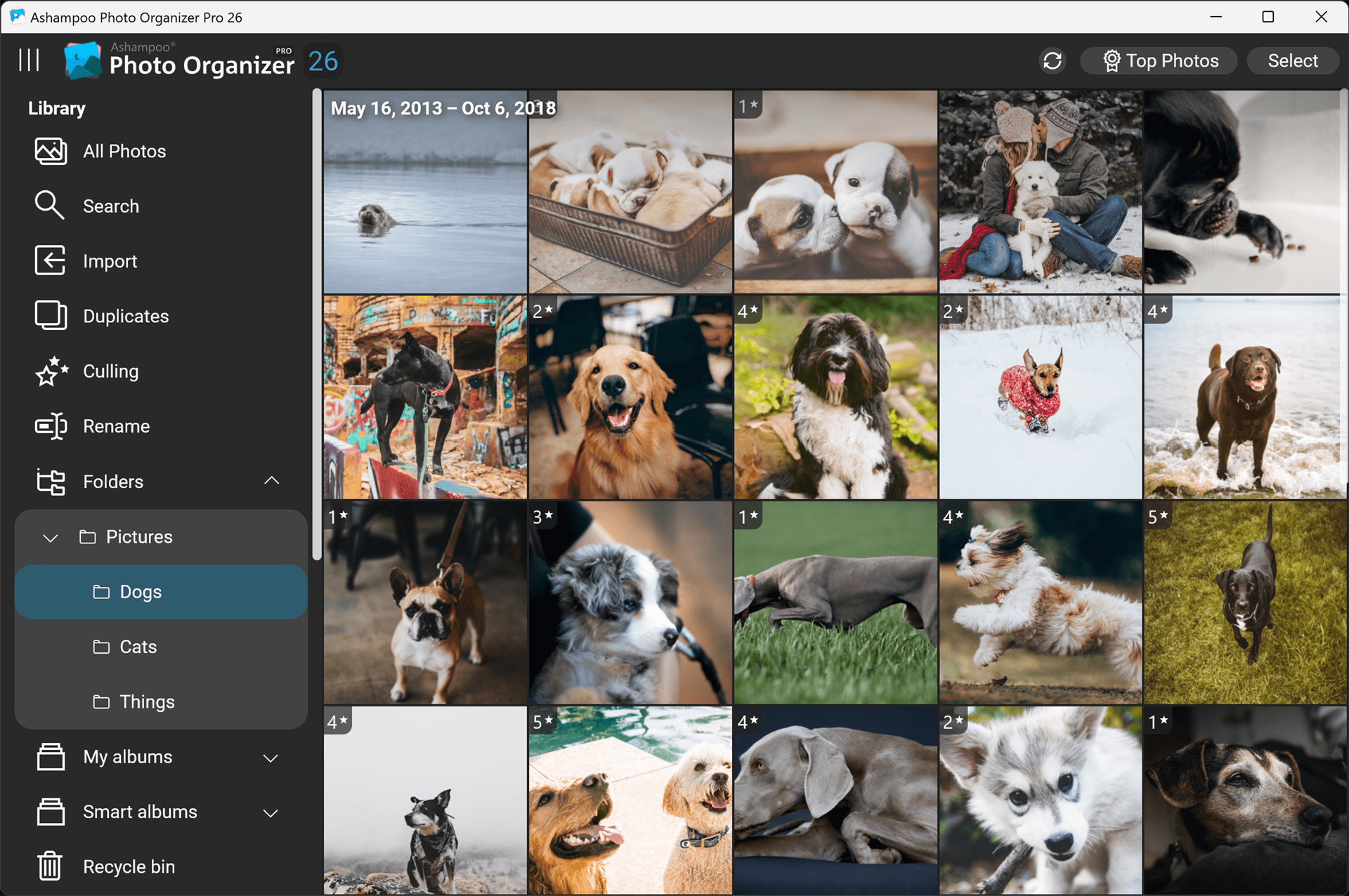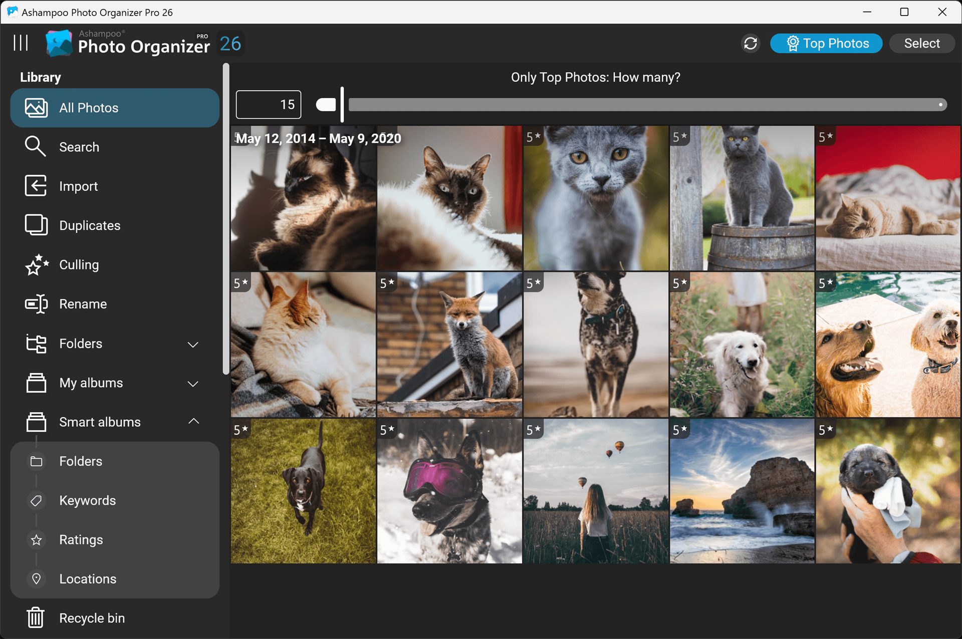 Ashampoo Photo Organizer Pro brings order to large photo collections. With numerous smart features, it helps find, group, rate, sort out, or rename the best photos.