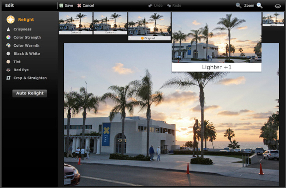 Using an intuitive visual interface, Aurora turns your computer into a digital darkroom. Select what aspect of the image you want to improve: contrast, brightness, color balance, tint, or crop, and Aurora will give you a banner of thumbnails to choose from. Just click on the one that looks good and you're done!