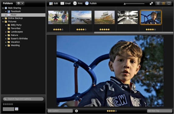 - Quickly publish to social network and photo hosting sites including: Flickr, Facebook, Shutterfly, Smugmug, Photobucket, Twentythree, and Picasa.