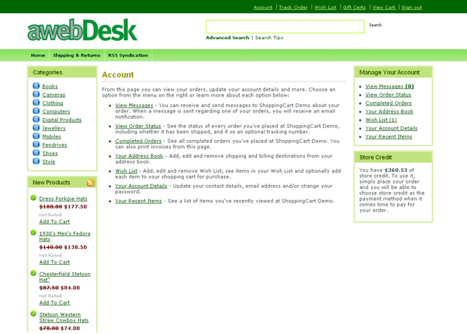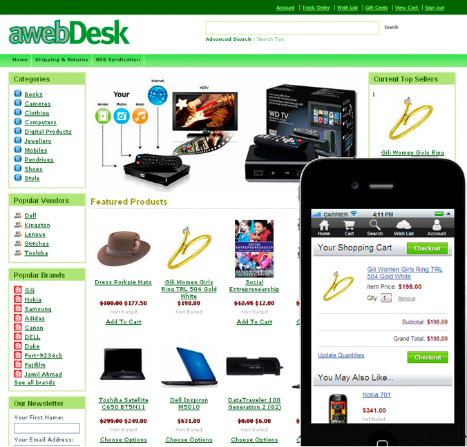 AWebDesk Shopping Cart Software gives you the power to build a fast and impressive e-Commerce website with absolutely no technical skill required. With AWebDesk Shopping Cart Software, you’ll enjoy access to over 80 HTML-based themes and store designs, all customizable to mimic the name, look, and feel of your brand. Seriously, just a quick installation and three steps separate you from e-Commerce utopia when you use AWebDesk Shopping Cart Software!