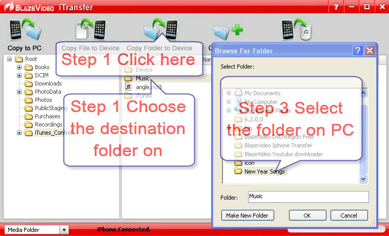 BlazeVideo iTransfer lets you transfer files back and forth between your iPhone and computer, without using iTunes. With BlazeVideo iTransfer, your Apple gadget becomes a USB disk that can store important files that are with you all of the time. You can even create folders on your device to organize your files efficiently.