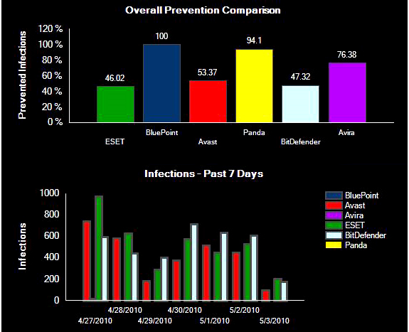 - “BluePoint Security 2010 showed some remarkable protection capabilities scoring 100% in all three stages of our reviewing process.
