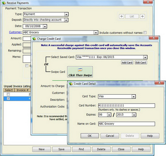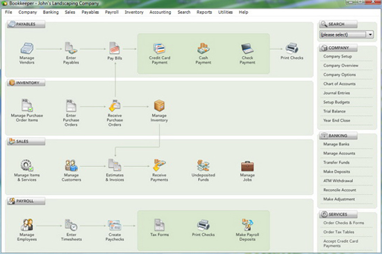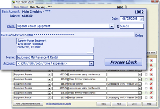 - Write checks, create invoices, process payroll and credit cards, and more.