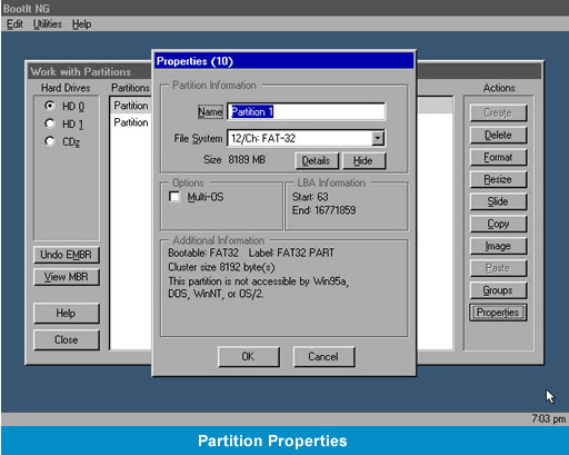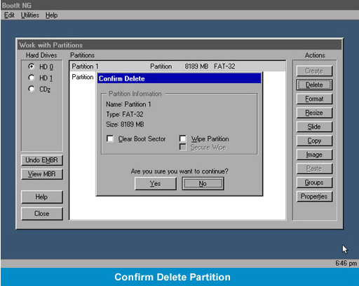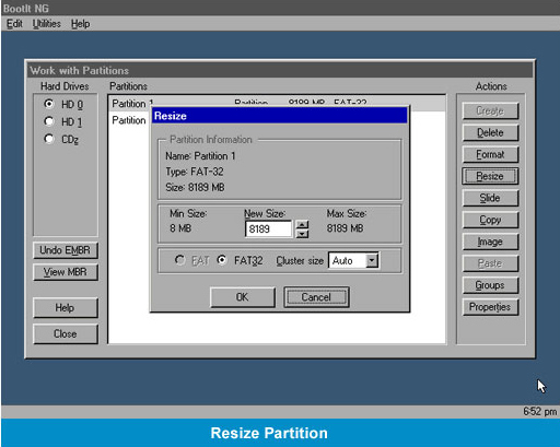 In addition to creating, securely deleting, and undeleting partitions, BootIt Next Generation also performs non-destructive resizing for both NTFS as well as FAT/FAT32 drives. Can you imagine creating over 200 primary partitions on a single drive? With BootIt Next Generation, it's entirely possible!