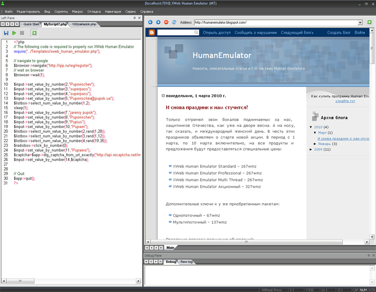 Want technical details? You can program Browser Automation Studio to gain access to authorized sites, even with multi-level registration, captcha codes, and control questions. Grab and store data in a variety of formats, from text to MySQL database formats. Apply stress tests to web sites, automatically uncovering dead links, missing pictures, or errant scripts.