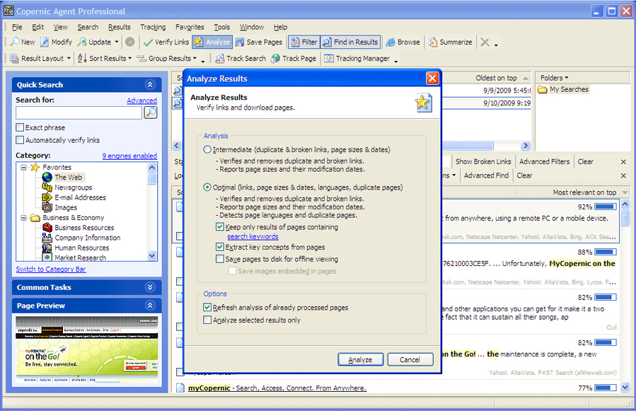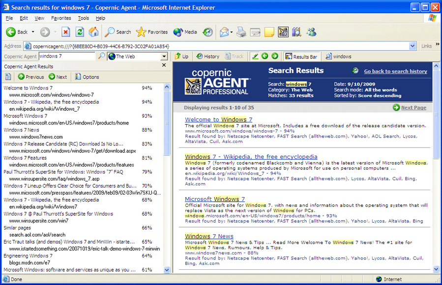 - “Copernic Agent is an exceptionally useful tool for web searchers. It allows to selectively search multiple sources with its powerful sorting and analysis tools. Not many people think beyond Google or Yahoo! to do simple searches, and those who do, often find that great alternatives are available. Copernic Agent is one of those few software that can be customized to appeal both to hardcore users and inexperienced researchers and doesn't lose any effectiveness in the process. With its different search categories polling several search engines, it provides deeper search capabilities.”