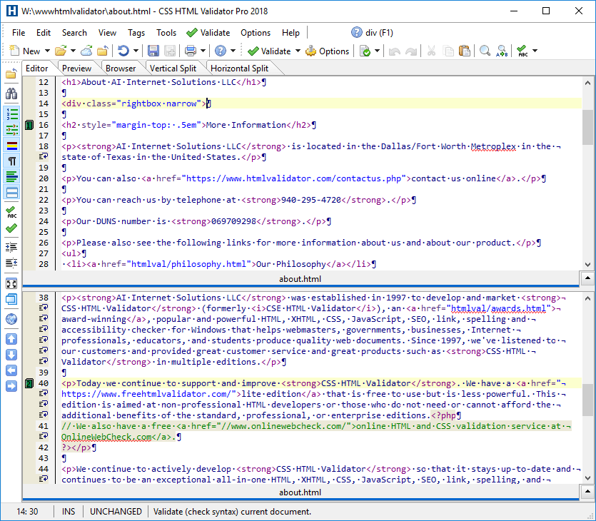Note: The trial download is for the CSS HTML Validator Professional Edition. Check out the feature comparison matrix to see how the Standard and Professional Editions differ.