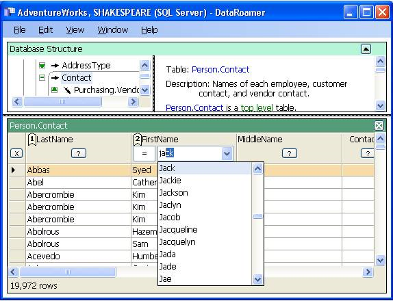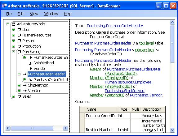 DataRoamer is a powerful tool for exploring the structure and data in relational databases. It provides quick, intuitive point-and-click database access - no commands to learn, no queries to type.