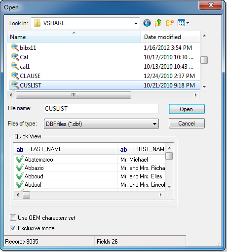 “DBF Viewer 2000 goes beyond what I expected from such an affordable price. Matter of fact, the company, and the people behind DBF Viewer have gone way beyond the norm of service and response. I started using this program to view dbf files I created with MS Access. Soon I discovered I could make changes to files with DBF Viewer. I could also get very rapid reports on not only the field size I had set in the dbase file, but also the true size of the field by min and max character reports. This helped me immensely when trying to shrink down files of over 50,000 records. The fact that I could quickly run filters, and save new files based on filters was a real bonus. Not only that, the deletion and removal of unwanted records is very fast! DBF Viewer is extremely fast in handling large databases that otherwise take up time and memory with MS Access. The real kicker is what the people behind the scene did when I sent them some tips. I asked them for a number of new features including an automatic field sizer based on max character contents. They sent me an email saying to stay tuned for a newer version. Within a week, there it was, everything I asked for. And then! . . . the same day I tried out the new version, I sent an email asking if they could add a trim function to remove leading spaces in some columns. Guess what? Next morning they sent me a link to an updated version to give me the feature. Incredible considering I deal with many other software suppliers that I use to process large databases. And all of them cost 10 times more than DBF Viewer and I struggle with most of them to get support. The software, and the service behind it, have saved me a lot of work in the past months. I never thought I would see something that made Access look so slow. Access has it's place, but DBF Viewer has really made my work much easier and faster. Good job DBF Viewer gang . . . Really appreciate it . . .”