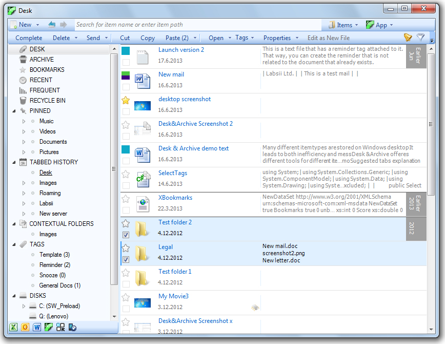 Desk & Archive ScreenshotFile Management Software Screenshot