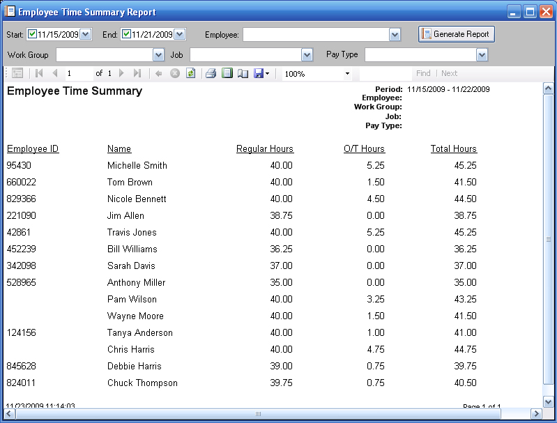 As boss-person, Employee Time Punch gives you latitude to be as harsh or easygoing as you please! For example, you can round time entries up or down, allowing for a policy that either grants leniency or enforces "top of the hour" with an iron fist. Set hourly limits to enable the triggering of overtime based on the number of hours worked in a day or in a week. And when it comes to information management, Employee Time Punch gives you extensive reporting capabilities that let you analyze employee, job, and project cost data to guide strategic decision-making. Need to share information? Every report in Employee Time Punch can be exported to Excel, PDF file, or to email!