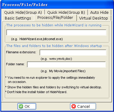 HideWizard is a powerful tool for hiding not only application and browser windows, but also just about any process or file. A variety of settings allow you to specify how and when programs get hidden, to custom-automate the HideWizard process, to add transparency effects, to mute sounds, and much more!