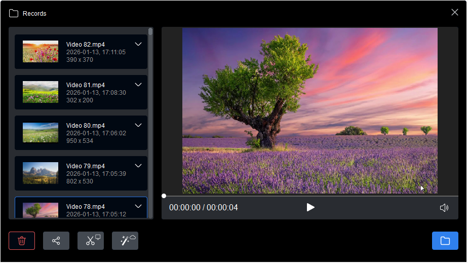 - Capture screen actions and save them as video files.