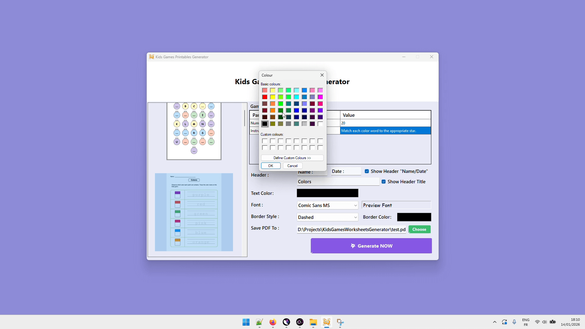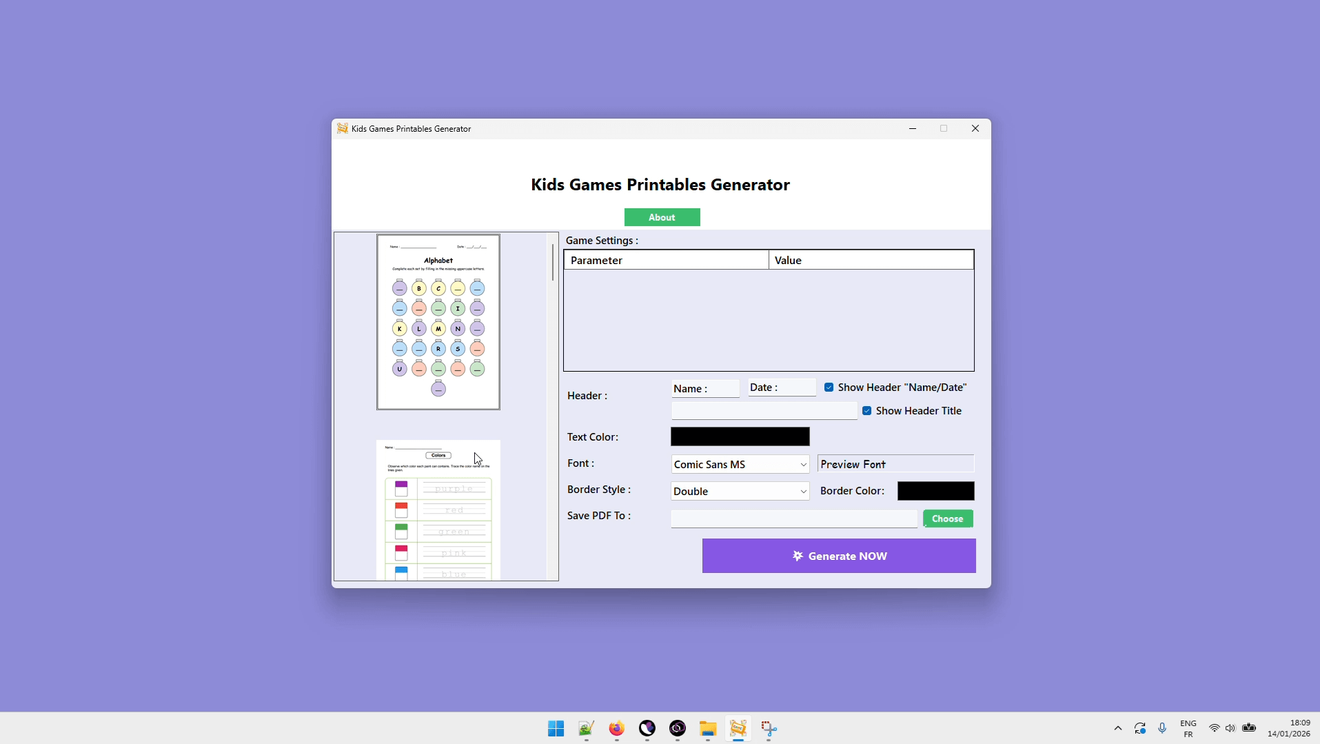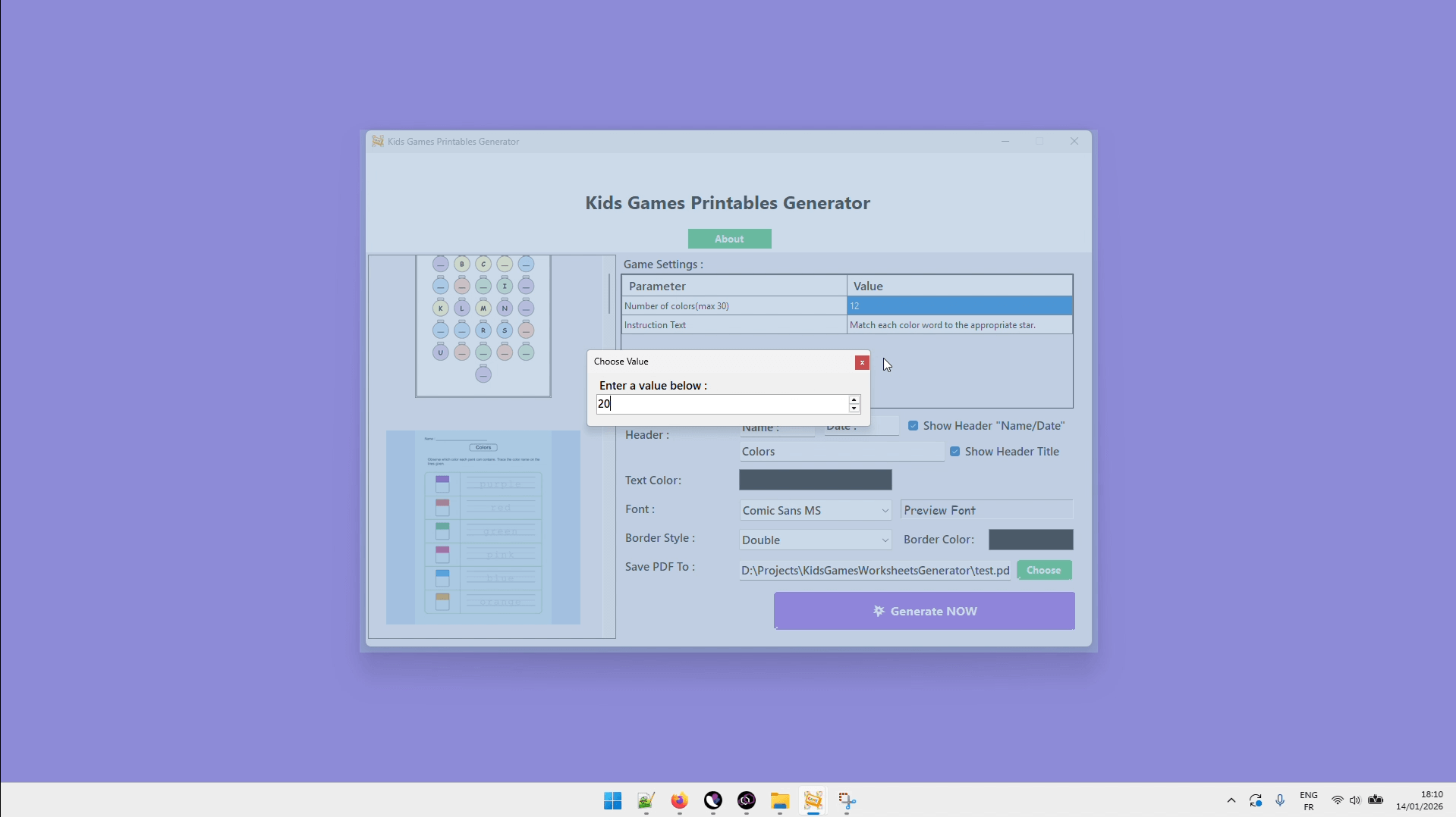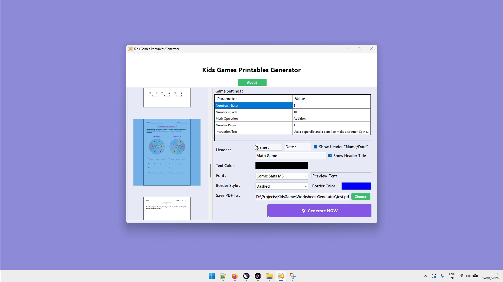 Kids Games Printables Generator is a powerful Windows desktop app that lets you instantly create professional, print-ready A4 worksheets and games for kids with just a few clicks.
