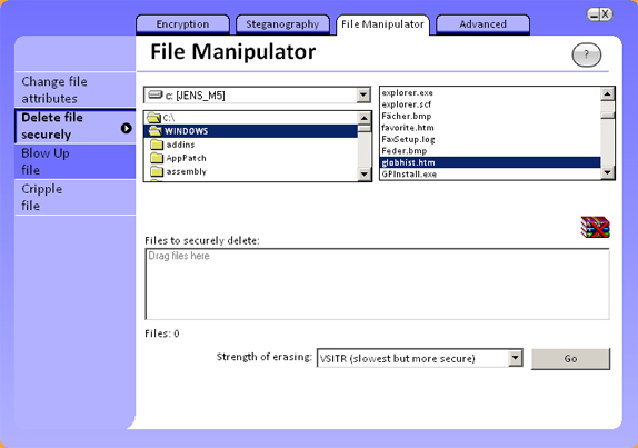 - Securely delete files with no chance of recovery.