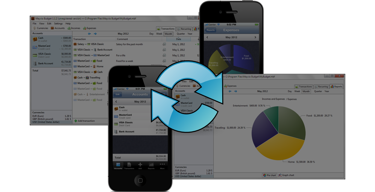 You can get all sorts of crazy organized when you use Mayvio Budget. In addition to multiple accounts, you can also set up categories and subcategories of transactions, as well as recurring transactions. Two forms of reports serve your need for visual stimulation when you want to see performance. Best of all, your information syncs across multiple devices if you use Dropbox!
