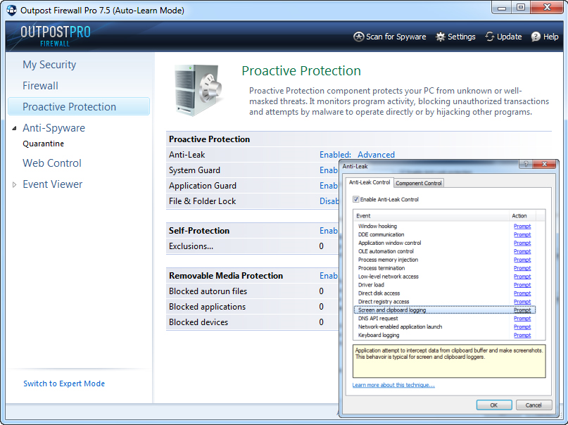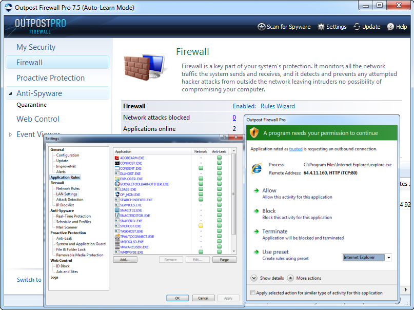 Outpost Firewall Pro is the perfect solution to safeguard your computer from spyware, adware, malware, and any other form of electronic evil. With Outpost Firewall Pro, you'll even be able to block unknown and zero-day threats, meaning you're protected without having to download updated virus definitions!