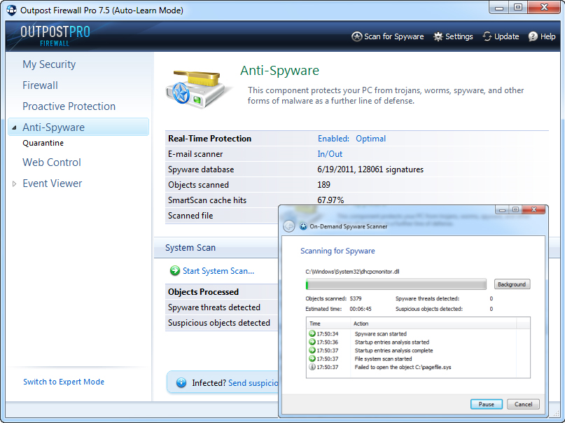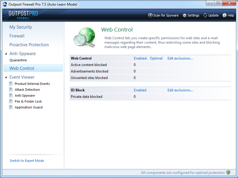And for those times that you are, in fact, just surfing the web, Outpost Firewall Pro offers fast web content filtering, guaranteeing that web-borne threats don't stand a chance of getting into your machine. Addiitonal features include real-time monitoring of file and registry activity, to quickly detect and address any attempts to modify important system files!