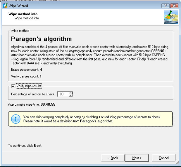 Don’t trust major governments and military security agencies? That’s okay, you probably have good reason, which is why Paragon Disk Wiper 11 Personal also lets you come up with your own customized wiping method! No matter what method you use, you’ll always receive a detailed wipe report complete with extended hardware and system information.
