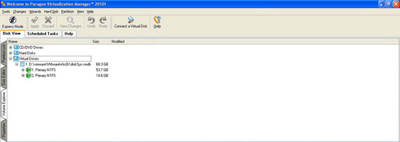 With Paragon Virtualization Manager 2010 Personal, you'll be able to easily migrate your computer to a virtual environment, or migrate a virtual environment to your computer. Why deal with the hassle of starting a virtual machine, when Paragon Virtualization Manager 2010 Personal lets you work with multiple virtual disks from a single, intuitive interface?