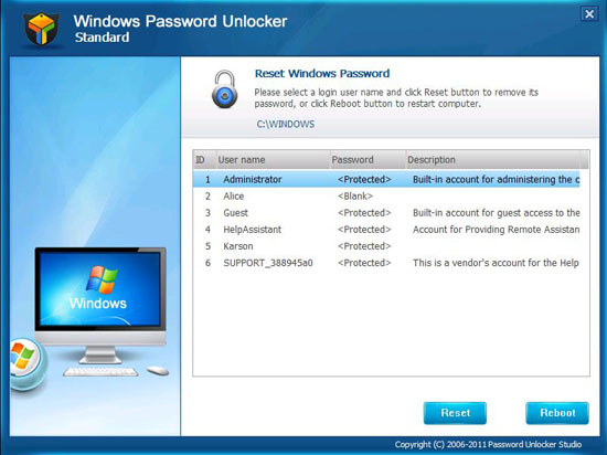 - Instantly reset Windows passwords
