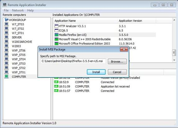 Using Remote Application Installer is easy. Just a few clicks will have you installing or uninstalling apps across all of the computers in your LAN. Plus, all of the actions that you perform are precisely logged for future reference!