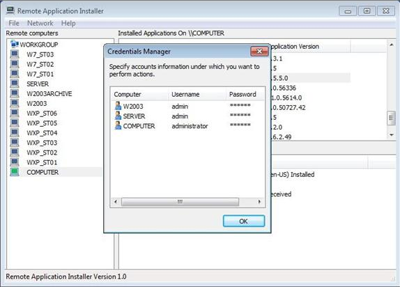 Remote Application Installer is a tool that helps you to install software on remote computers in your LAN, using only an MSI package and a list of computers that need the software. The installation process is completely automated, requiring no admin or user participation, so you don't even have to leave your seat in your comfy SYSADMIN office. Remote Application Installer can even detect and uninstall a list of applications that are installed on remote computers -- perfect if a rogue, unauthorized software app has made its way through your network!