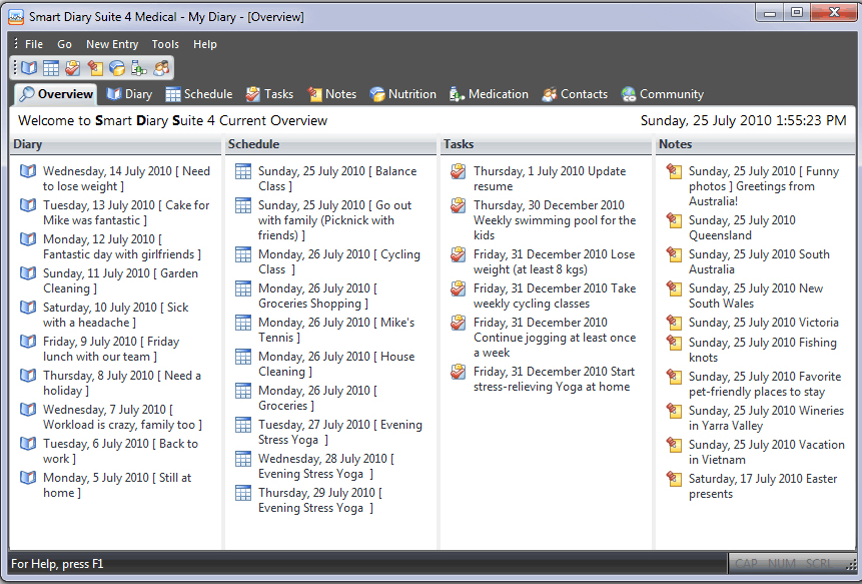 “Smart Diary Suite is exactly what the name implies. I live a full life as a family man, business man & individual. As if everything wasn't complicated enough I was recently diagnosed with diabetes.The Medical Edition of Smart Diary Suite compliments every need I've been looking for in a Journal/Organizer program. It's like having an entourage of assistants in one convenient package at a better than reasonable price.”