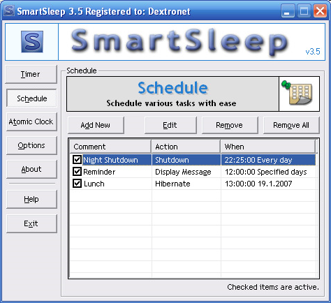 SmartSleep is indeed a smart utility, allowing you to shut down, hibernate, reboot, and execute programs on a 24/7 schedule. That means you can have SmartSleep automatically shut down your computer at a different hour on weekends than on weekdays!