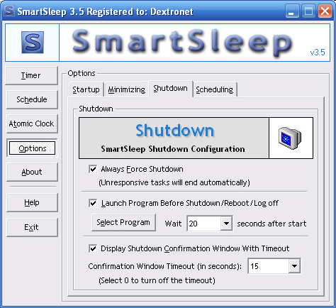 So why is it, then, that so many of us don't do the same thing with our computers? Is it because we think we're going to use it later, and then end up falling asleep in bed? Is it because it's too much trouble waiting for applications to close before (finally) the PC shuts down? Or is it because we just don't have a copy of SmartSleep, a versatile and powerful shutdown scheduler?