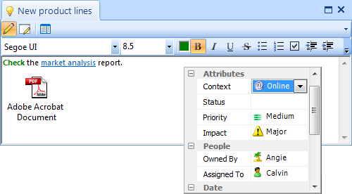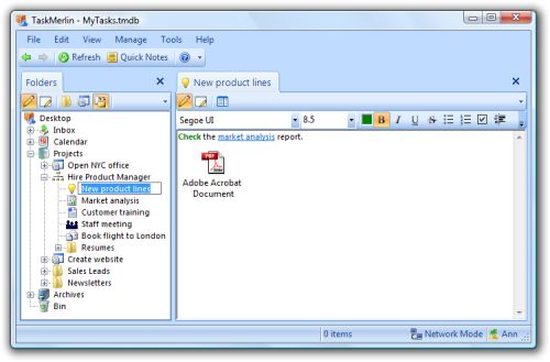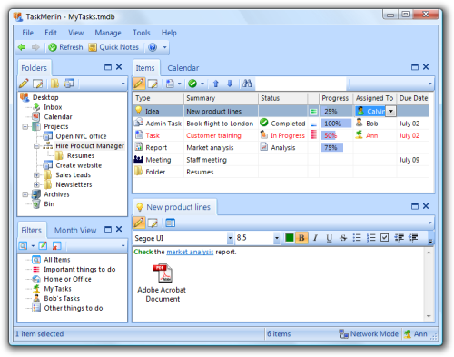 If you’re working in a team of people, you will appreciate TaskMerlin Personal Edition’s ability to manage projects collaboratively. In fact, each project member has the ability to update tasks right from their desktop or laptops! Throw in attachments in the form of documents, hyperlinks, images, and more, and TaskMerlin Personal Edition is all you ever need to manage projects both small and large!