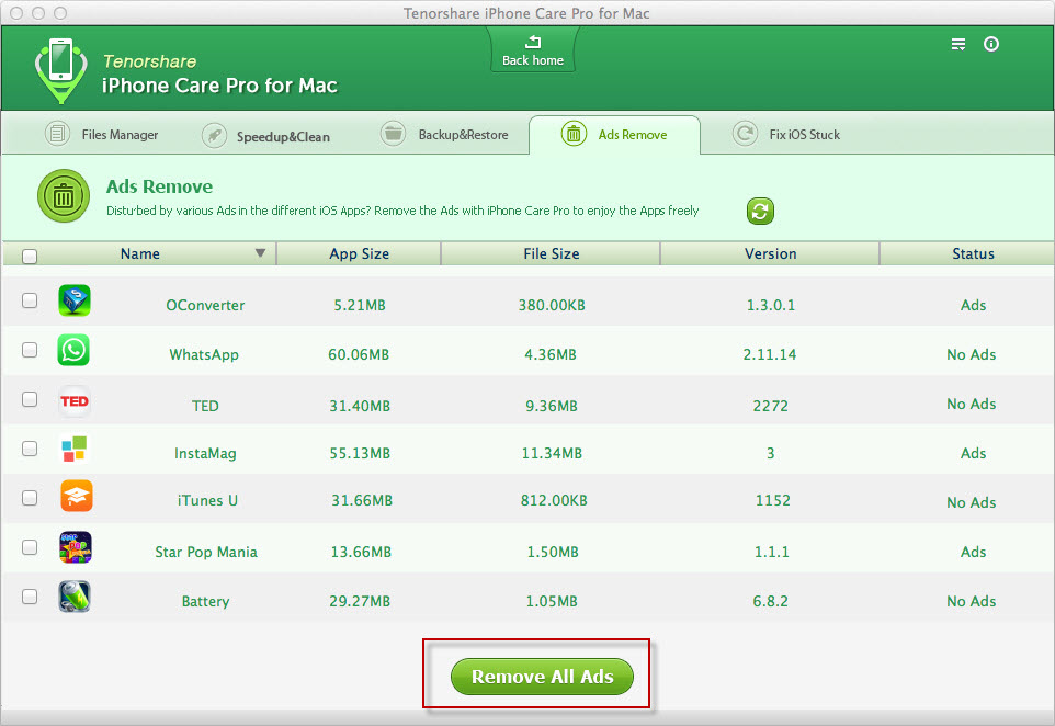 “Actually this software is very powerful. Versatile functions. One is as excellent as five programs. By now, I have tried 3 functions of it: remove ads, speed up my iPhone, and manage my files.”