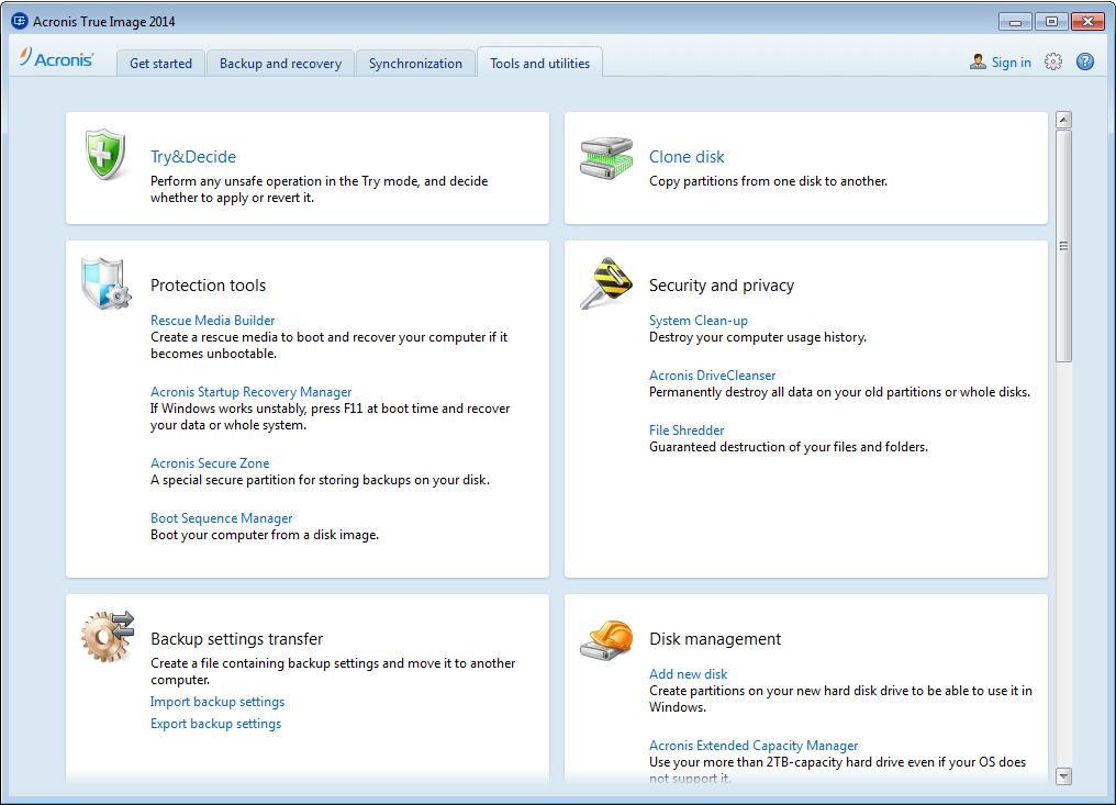 True Image 2014 Premium is an award-winning backup and disk imaging application that provides reliable backup and recovery of all of your files. With True Image 2014 Premium, you’re free to select a backup solution that stores your files locally or online, with the additional liberty of choosing full backups or just specific files and folders. You can even use True Image 2014 Premium to backup your entire configuration, so that your PC can essentially come back from the dead with all operating system, settings, applications, and data intact!
