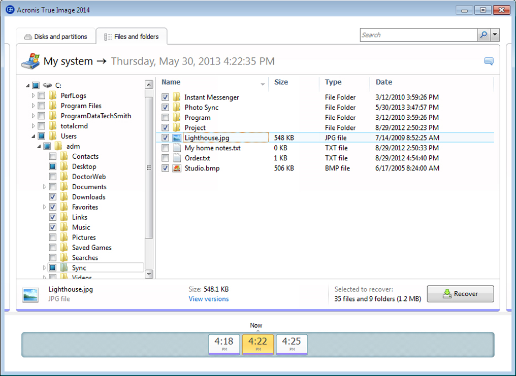 Local backup options include removable drives, optical media, USB drives, and more. Want to go to cloud storage? Use the cloud storage or your own NAS device. No matter what you choose, True Image 2014 Premium offers incremental and differential backups to make sure you don’t waste a lot of waking hours watching your system get backed up. Best of all, you can choose to go back to any version of a file or folder at any time!